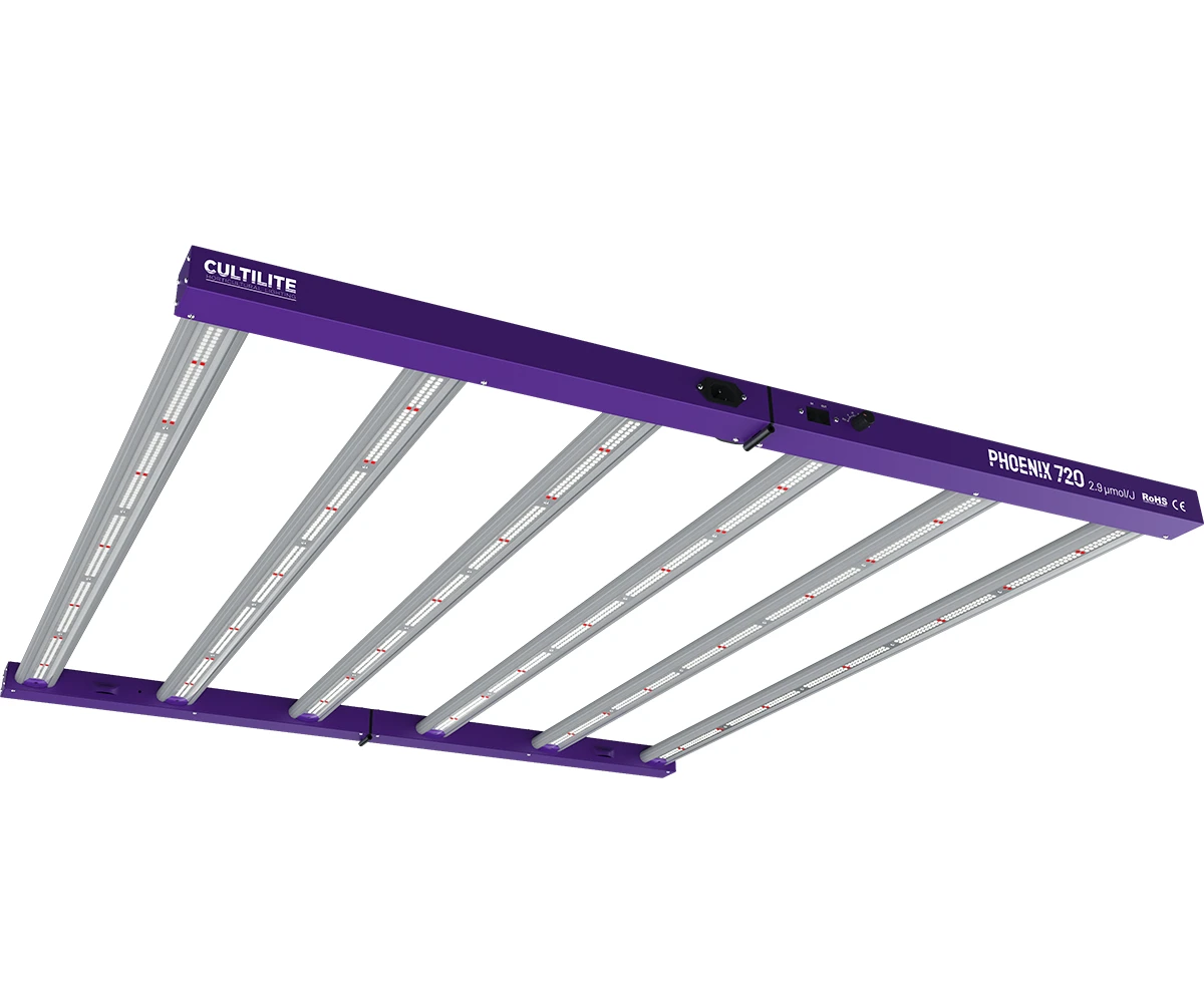The Cultilite PHOENIX 720W is a next-generation LED grow light designed for professional indoor cultivation. It provides a full spectrum (4000K + 660nm) that covers all growth stages, from vegetative to flowering, ensuring healthy and productive plants. Thanks to its passive cooling system, IP65 protection, and integrated dimmer (0–10V / PWM), the PHOENIX combines efficiency, reliability, and long lifespan. The external control system allows management of up to 50 units in a group, making it ideal for larger setups.